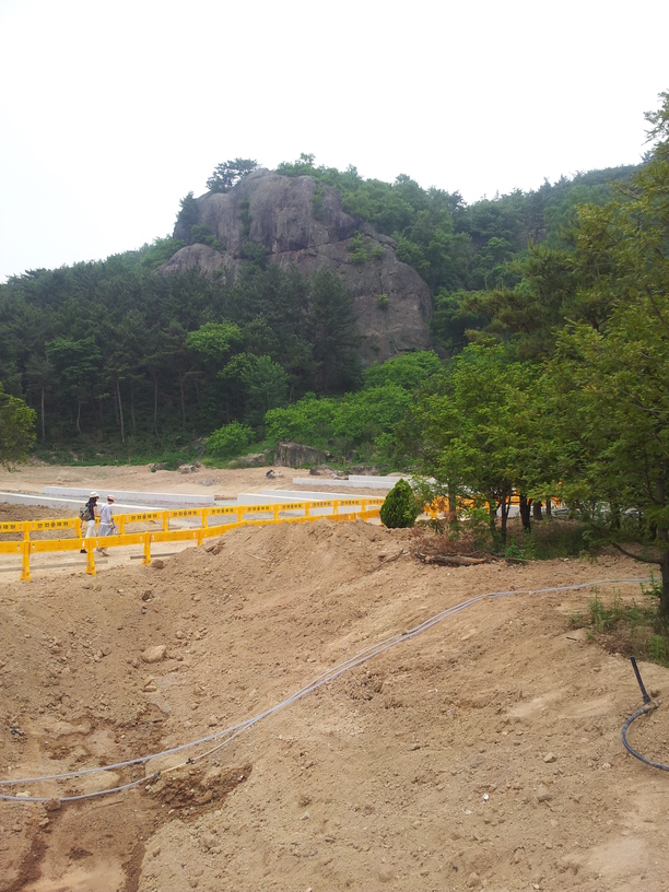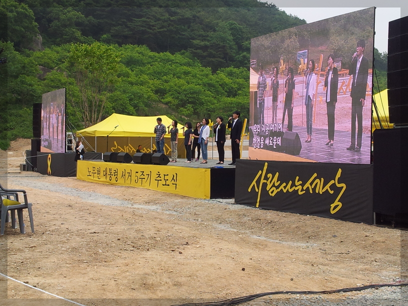 부엉이 바위와 지근거리에 추도식장이 가설무대와 함께 설치되어 있습니다.
