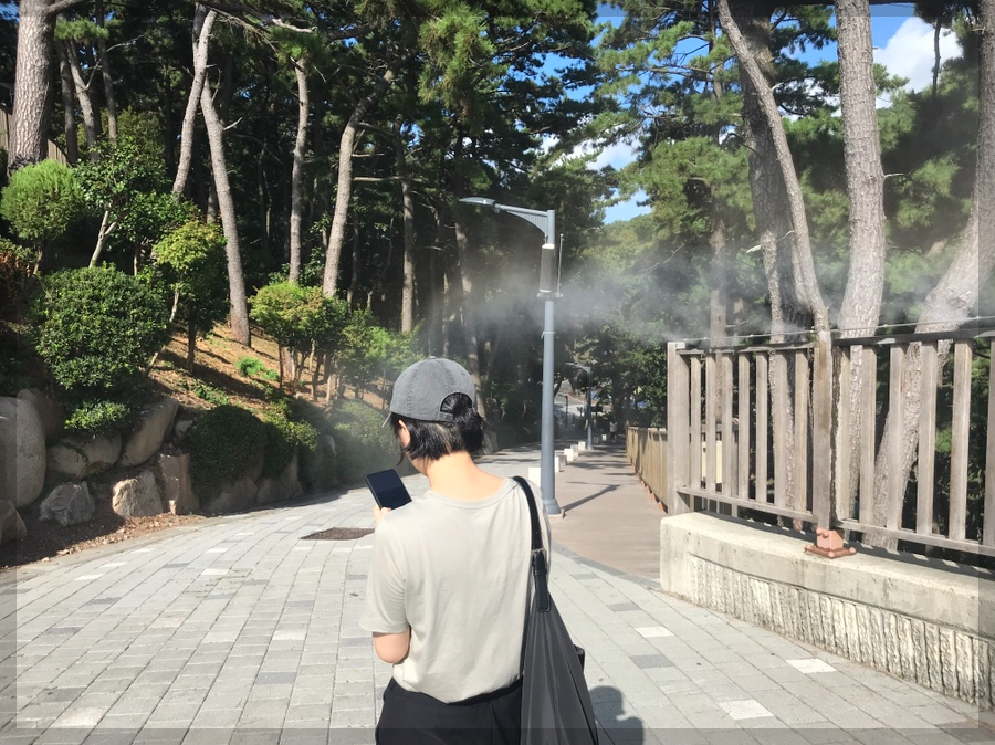 날씨가 더워 내려가는 길목에 증발식 쿨러가 작동되고 있습니다.