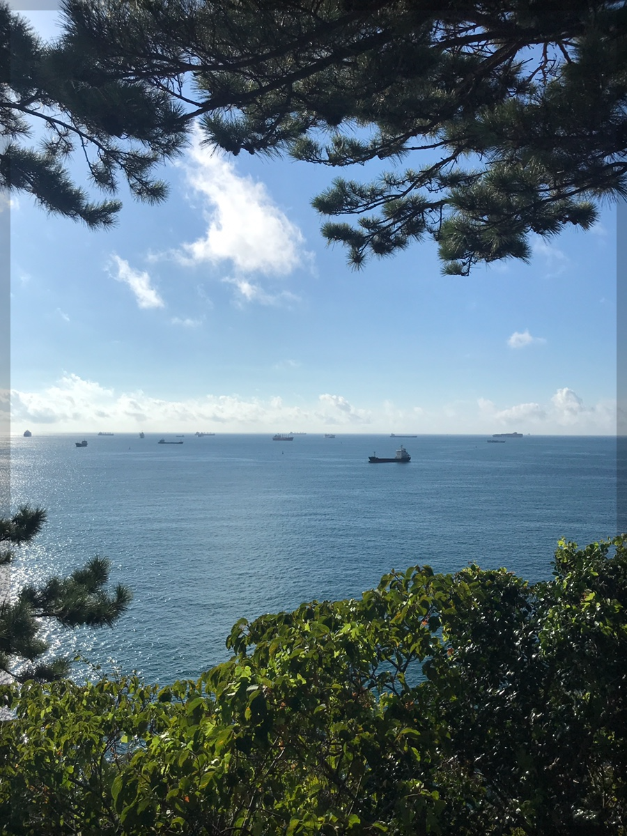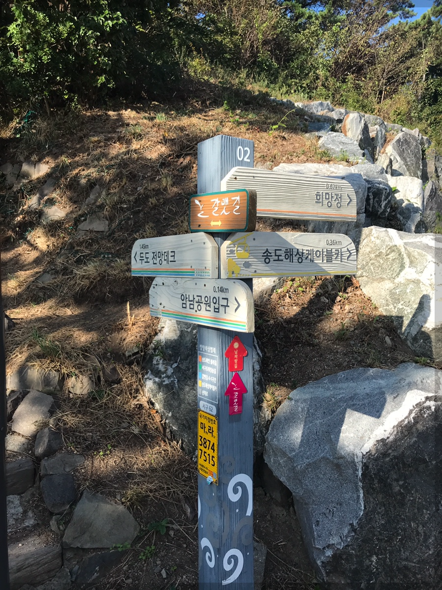 암남공원에서 바닷가를 따라 해안산책로를 걸을 수 있습니다. 제가 방문했던 작년 추석만 해도 너므 더워서 차마 해안산책로를 걸을 엄두를 내지 못했습니다. 저 아래 바닷가 산책로는 1) 갈랫길 4-1구간 2) 송도 해안볼렛길 1,2코스 3) 해안 산책로라 불리는 구간이 겹치는 곳입니다. 암남공원안에서 볼 수 있는 두도전망데크까지 걸어보시는 것도 좋은 선택지입니다.
