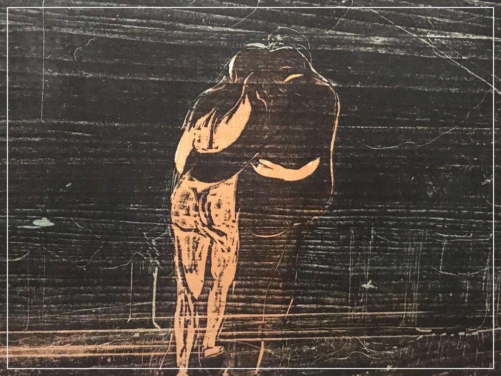 그렇다면 머리를 감싸고 고개를 파묻은 못난 남자는 뭉크 자신이라는 이야기입니다. 자신의 부끄러운 모습을 예술의 한 장면으로 승화(?) 시켰다구요? 그냥 쪽팔림을 감수했다고 하는 게 더 현실적인 표현입니다.