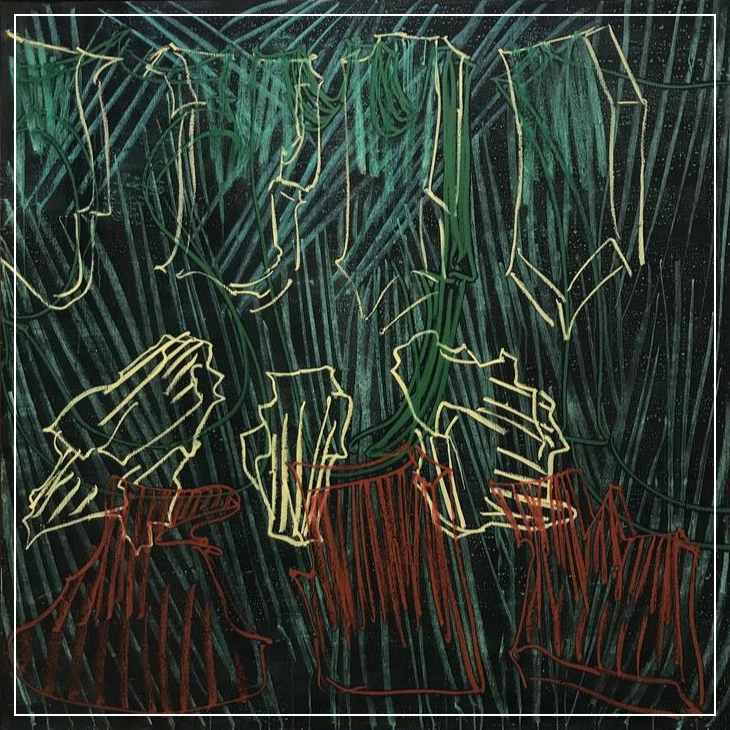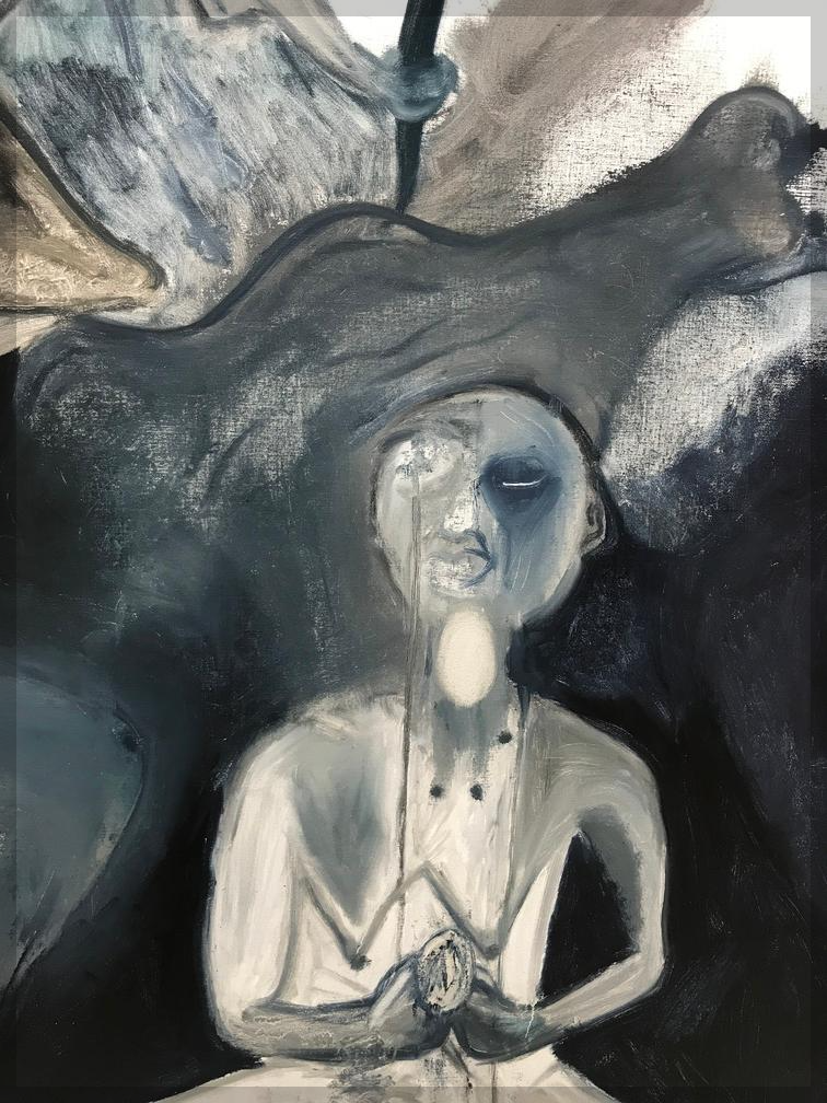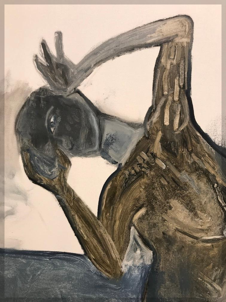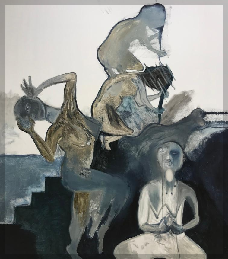 소피아 미솔라는 주로 여성의 몸을 조사하기 위해 그림을 그리는데, 고대 이집트와 그리스 조각, 일본 애니메이션, 포르노의 인물을 보면서 그녀 자신만의 신화적 인물을 구성한 다음 기하학적이고 무대와 같은 구성에 배치하는 방식으로 작업합니다. 이들에게 생생한 색상이 칠해짐으로써 생명력이 부여되고 워시와 임파스토로 겹쳐서 입체감을 부여합니다.
