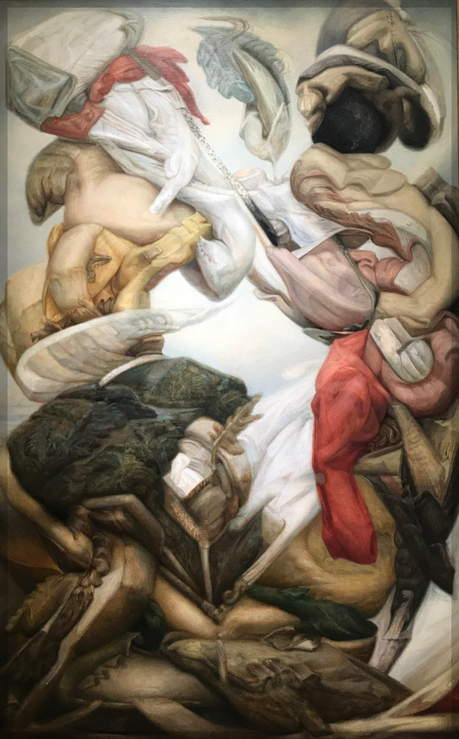 그의 그림이 비유적이라면, 실제로 우리는 신체와 풍경을 인식하고, 관점은 종종 뒤틀리고, 공간은 불확실하며, 갑자기 이상 현상이 발생합니다. 신체와 사물은 파편화됩니다. 그의 작품은 여러 우주(미술사, 사진, 영화, 문학, 음악)에서 참조되며, 매체의 특수성에 대한 의문을 제기하고 형상의 한계를 경험합니다. 아... 덴장 해설을 읽어봐도 무슨 소리인지 감이 잘 잡히지 않습니다. 이럴 땐 그냥 지나치기만 하면 됩니다.
