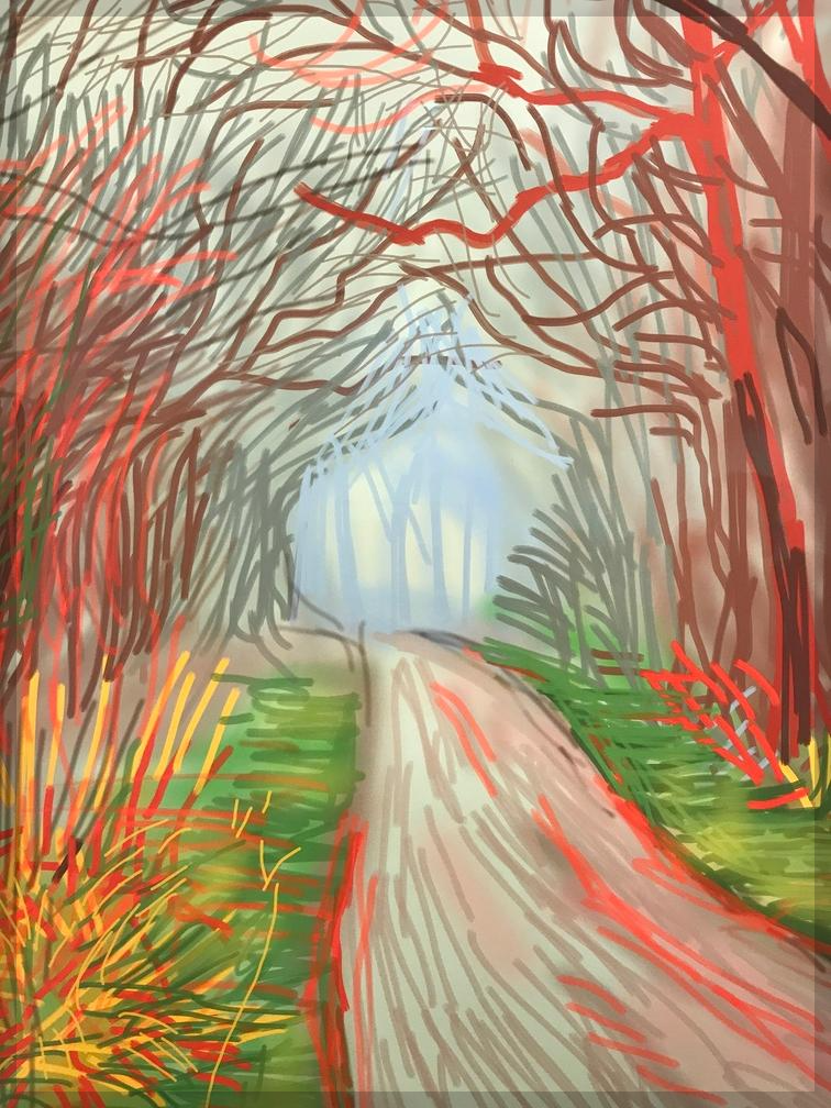 데이비드 호크니는 코로나 19시대가 엄습해 온 시대, 외출이 어려워지자 iPad화 그리기를 시도했던 할아버지입니다. 그런데 1m가 넘는 작품을 어떻게 iPad로 그릴 수 있었을까요? 혹시 확대기능을 활용하여 그림을 그린 후 크게 출력해 낸 것은 아닌지... 제작과정은 차치하고 데이비드 호크니의 끝없는 창작열에 놀라움을 금하지 못하게 됩니다.