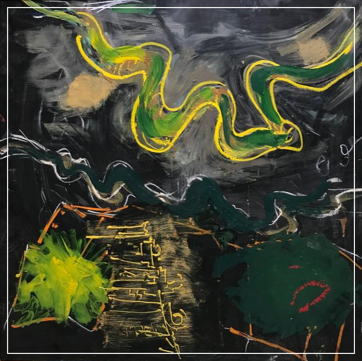 작품제목을 정하지 못한 이 그림에서 작가는 흙빛 색조의 두껍고 공격적인 획과 노란색과 파란색의 반짝임으로 장면을 묘사했습니다. 그는 나무, 바위, 인물의 검은색 윤곽을 그리면서 순수한 추상화에서 벗어난 작업을 해왔습니다. Kirkeby는 50년 동안의 경력 동안 건축, 시, 조각에도 관심을 가졌고 Lars von Trier(라스 폰 테리에, 덴마크 영화감독)의 영화를 위한 시각 효과를 담당하기도 했습니다. 아티스트로서 그는 실험적 Fluxus 그룹의 초기 멤버였고 Joseph Beuys와 Jörg Immendorff가 조직한 공연과 Happenings에 참여한 바 있습니다.