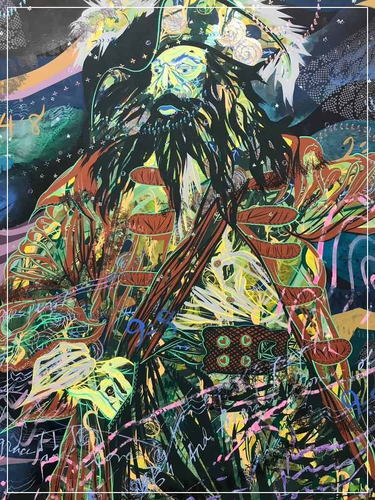 세자르 산토스(b.1982)는 현대 쿠바계 미국인 예술가이자 초상화가입니다. 그는 두 가지 이상의 예술적 경향을 미학적 균형으로 표현하는 그림 즉, "싱크레티즘(Syncretism)"이라는 작품군으로 더 잘 알려져 있습니다.