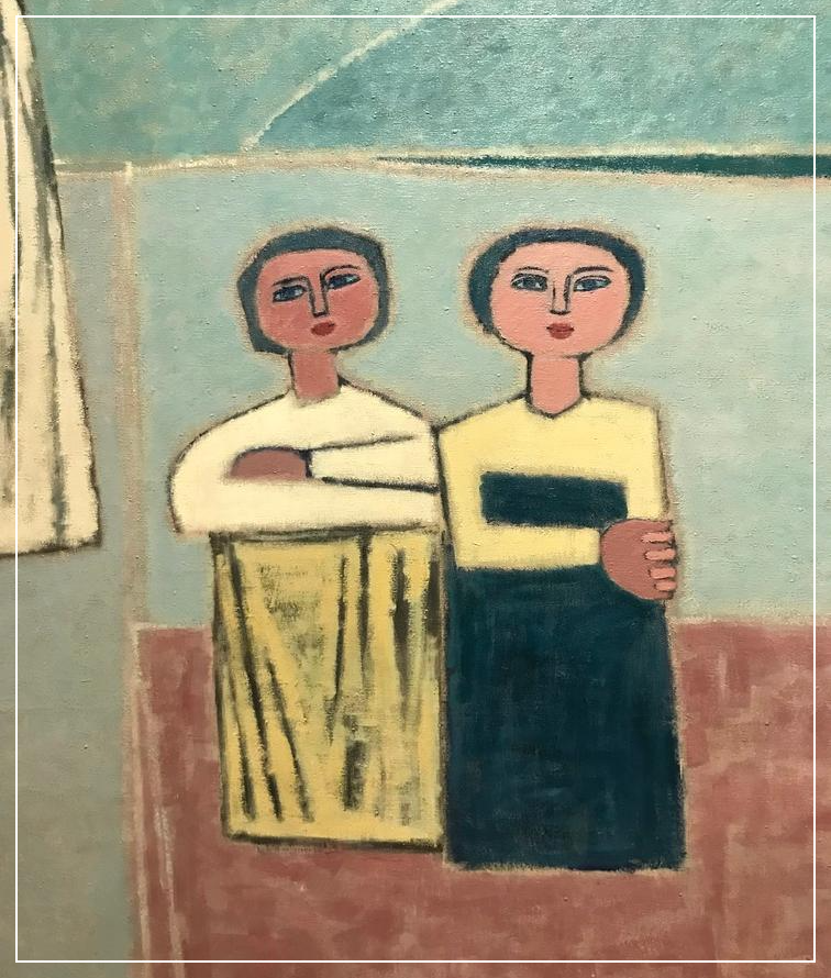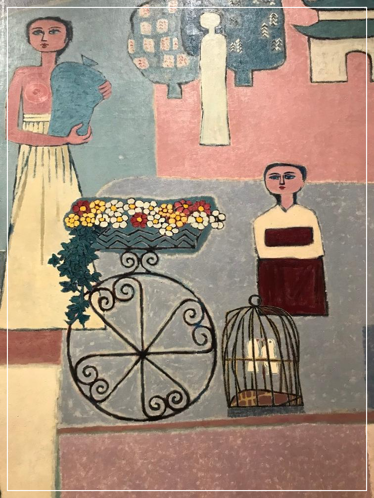 <한국의 여인들>은 김흥수의 파리 유학기 대표작으로 에콜 드 파리파의 영향을 받으면서 큐비즘적인 단순화를 시도한 작품입니다. 원색과 나이프로 전체 화면에 통일감을 주고 형태의 자율성을 추구한다는 점에서 초기 작품으로부터 변화를 보여주고 있습니다. 그의 작품 세계는 60년대로 진입하면서 보다 추상화 방향으로 나아갑니다. 이 작품에서 보이는 오리엔탈리즘적, 한국적 소재의 현대화 경향은 이후 김흥수 작품의 주요 특징으로 자리잡게 됩니다.